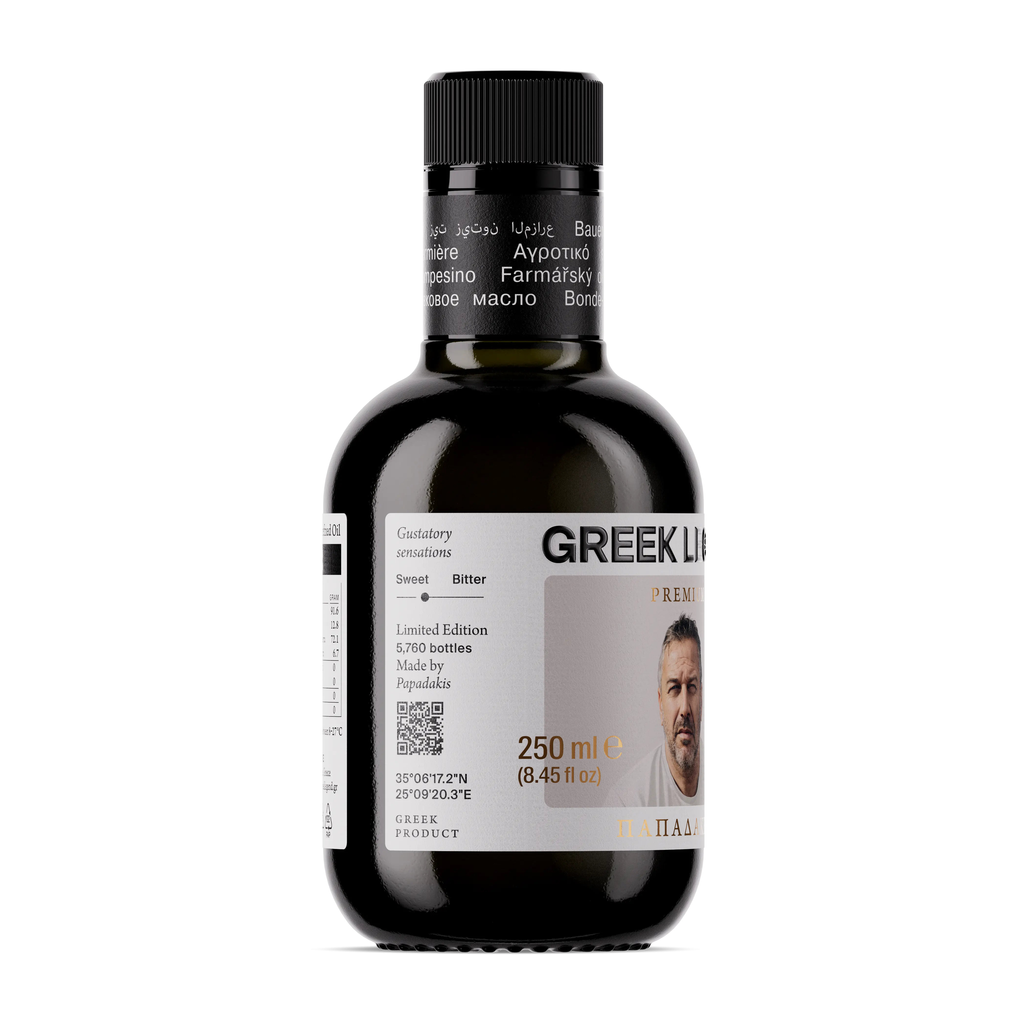 Масло серии Premium производят из оливок сорта Коронеики, собранных на экологически чистом терруаре острова Крит в момент их идеальной зрелости. Этот подход позволяет достичь совершенного баланса между насыщенным вкусом, высокой пользой и мягкостью, которую можно оценивать ежедневно. Каждая партия происходит от одного фермера, чье имя указано на этикетке, — это знак подлинности, уважения к многовековым традициям и гарантия прослеживаемого происхождения.