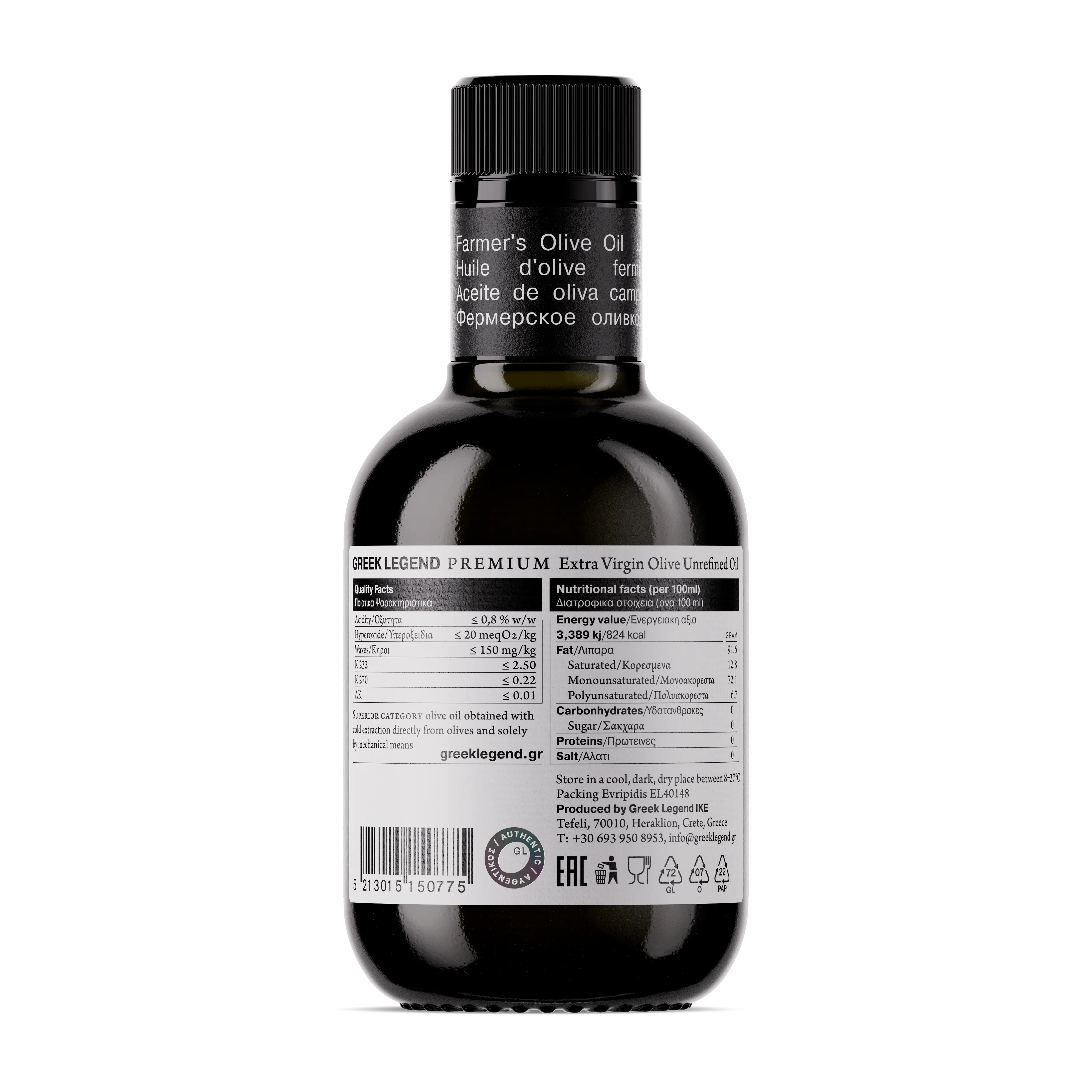 – Стандарты Greek Legend исключают смешивание масла, произведённого в разные сезоны и/или разными фермерами, что позволяет сохранить аутентичность урожая и уникальный вкус