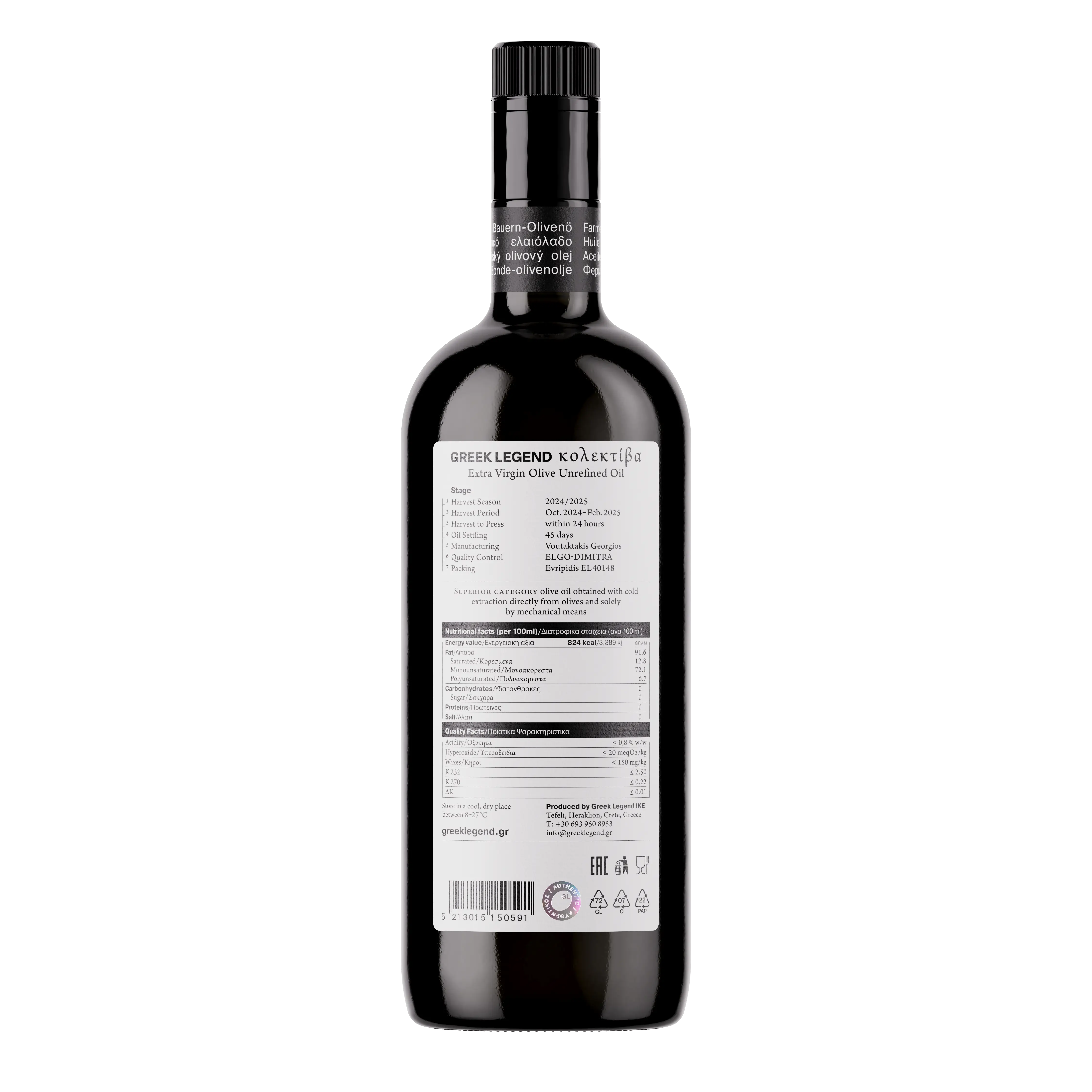 – Стандарты Greek Legend исключают смешивание масла, произведённого в разные сезоны и/или разными фермерами, что позволяет сохранить аутентичность урожая и уникальный вкус